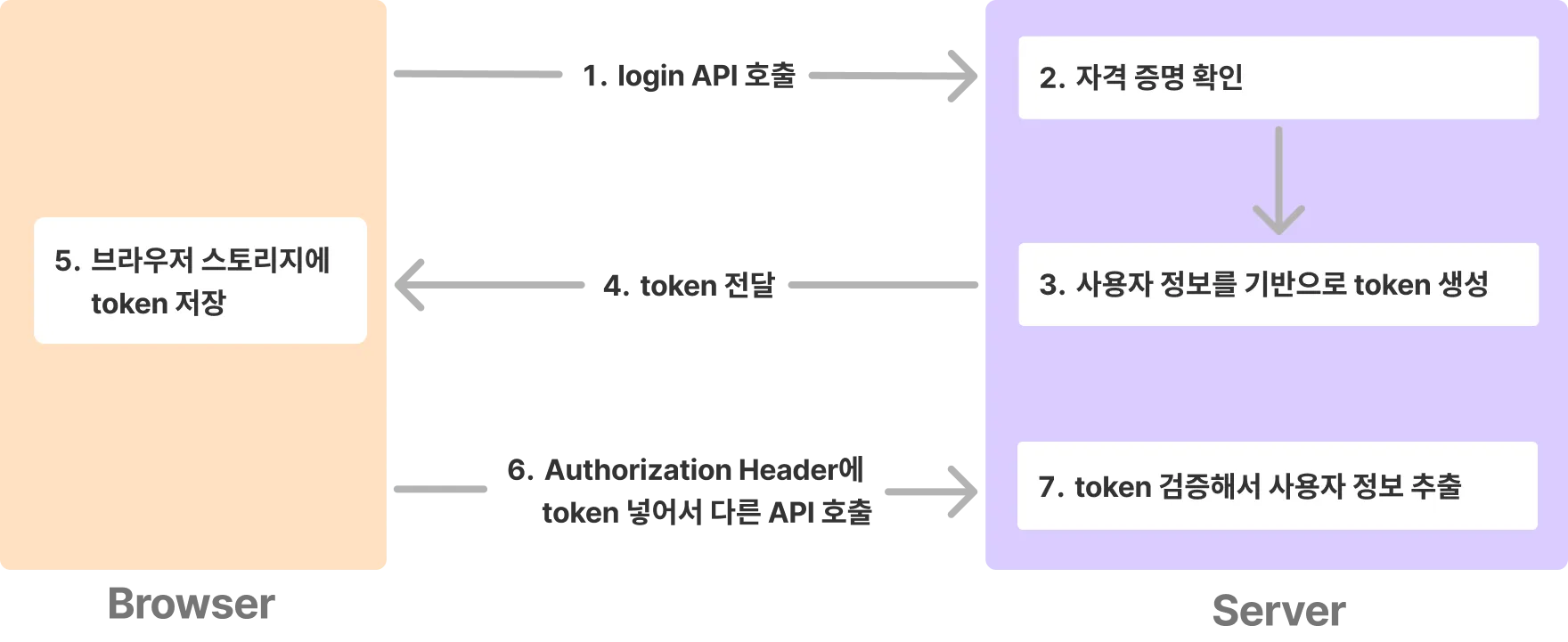 Authorization헤더에 포함해야 한다. - 서버는 각 API 요청에 있는 토큰을 검증해서 올바른 사용자인지 식별한다.