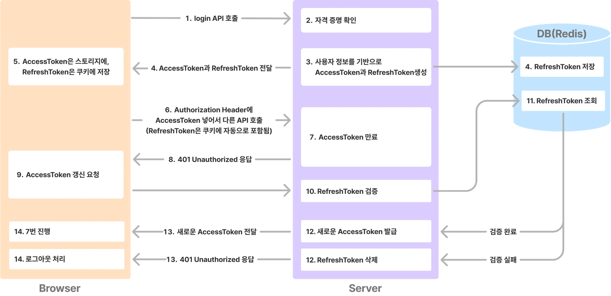 Authorization헤더에 포함해야 한다.RefreshToken은 쿠키에 자동으로 포함된다. AccessToken이 만료되었으면- 서버는 401 응답을 반환하고