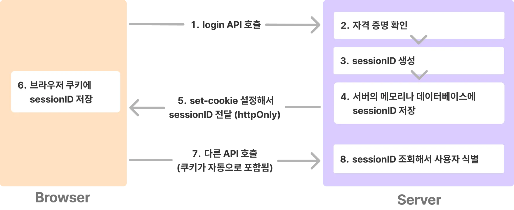 sessionID는 서버에서 관리되기 때문에 클라이언트에서 뭔가 딱히 할 것이 없다.- 서버에서