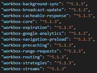 package.json에서workbox로 시작하는 패키지들을 기존 프로젝트의dependencies에 복붙한다.