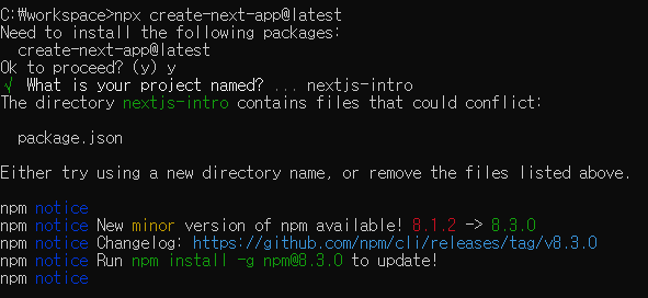 [NextJS] NextJS 시작하기 - 1. 프로젝트 생성 (feat. windows nodejs 최신버전 설치)