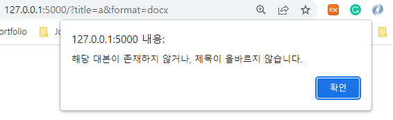 flash("해당 대본이 존재하지 않거나, 제목이 올바르지 않습니다.")